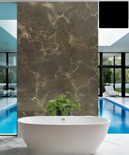 Armani Bronze Marble is a rich toffee brown colored marble. Armani Bronze Marble features a rich brown background accented with subtle white & gold veining. Bronze Armani Marble is especially good for Construction stone, countertops, mosaic, ornamental stone, landscaping stone, monuments, stairs, paving and other design projects.